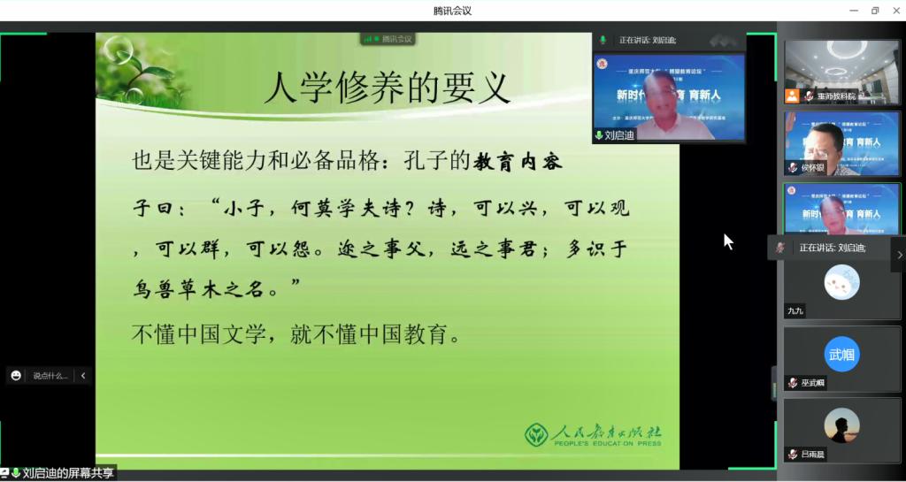 新时代呼唤新人才,培养新人才呼唤新教育。教育要如何顺应新时代,肩负起新任务、新职责,是当今教育工作者亟需思考的问题。近日,由我院主办的“博望教育论坛”系列讲座(第五期)以线上线下相结合的方式顺利举行。本期论坛主题为“新时代 新教育 育新人”,报告专家有:山西大学PA视讯侯怀银教授、人民教育出版社刘启迪主编、天津师范大学教育学部副部长和学新教授、华南师范大学学报主编王建平教授。本次论坛由我校副校长杨如安教授主持,PA视讯院长朱桂琴教授、副院长魏勇刚教授、教育学系主任伍雪辉副教授以及线上线下两百余名教师和研究生共同聆听。