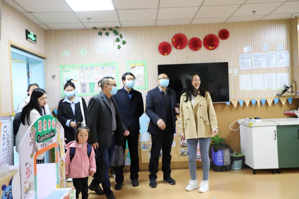 在杨瑜园长的带领下,罗庆书记一行对幼儿园的园所环境、户外游戏、班级活动进行了考察。幼儿园“苗土文化”指引下的自然生态与灵动状态令人印象深刻。