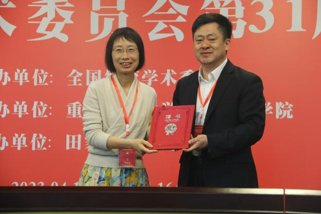 戚万学教授为魏贤超教授颁发聘书(由杭州师范大学蒋一之教授代领)