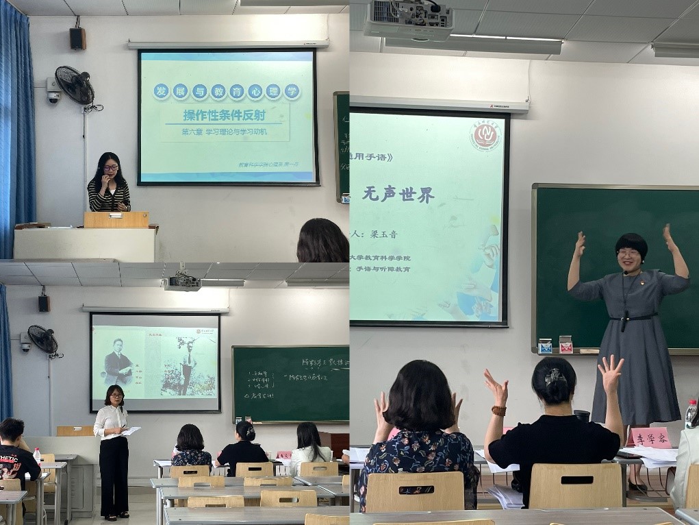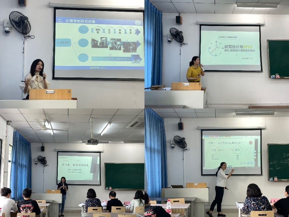教学竞赛内容包括“教学设计”、“课堂教学”、“教学反思”三方面。心理系张雪萌老师展示了《发展与教育心理学》的教学片段、教育系肖聪老师展示了《教育统计学中的几个基本概念之变量》的教学片段、教育系陶蕾老师展示的教学片段节选自《普通教育学》、学前教育系余雪老师呈现的是《学前儿童言语发展的机制》、心理系周一舟老师主要展示了发展与教育心理学中的《操作性条件反射》、学前教育系刘小红老师主讲了《陈鹤琴与鼓楼幼稚园》、特殊教育系梁玉音老师通过《无声世界》展示了手语的教学片段。各位参赛教师在教学过程中都呈现了扎实的语言功底和娴熟的课堂组织技巧,充分展示了PA视讯青年教师的教学风采。