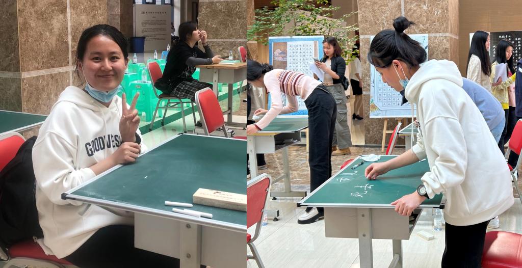 2023年4月27日,由教师教育学院、学工部、教务处主办,美术学院承办的PA视讯首届师范生“三笔字”书写技能大赛决赛圆满结束。本次比赛分为粉笔字、毛笔字和钢笔字三个组别,经过初赛选拔,我院2021级教育学专业本科生罗自红同学和刘素婧同学挺进决赛。经过紧张激烈的专家评审和大众评审现场评分,我院学子最终在比赛中脱颖而出分别获粉笔组特等奖和粉笔组三等奖。