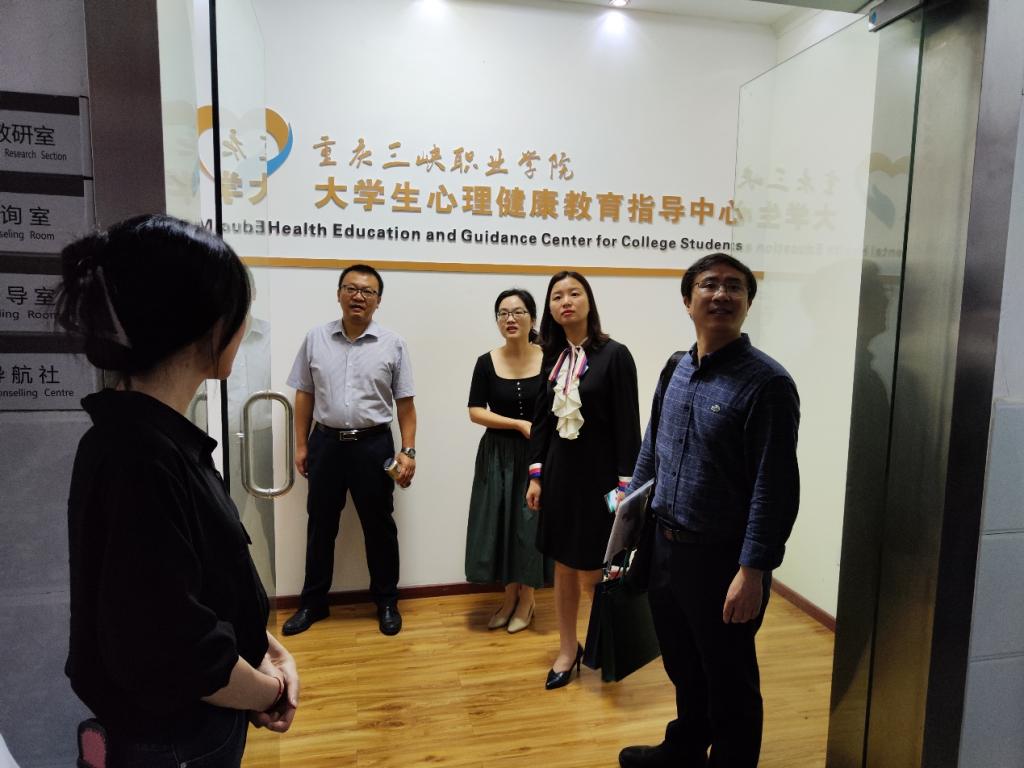 上午9时,罗庆书记、朱桂琴院长一行来到重庆三峡职业学院。在学生处陶毅处长、彭钦、卢文凤两位副处长的陪同下,首先参观了大学生心理健康教育指导中心,实地走访了心理咨询室、沙盘游戏室、音乐放松室、团体辅导室等专业功能室,详细了解中心建设,实地考察实习生的工作情况。