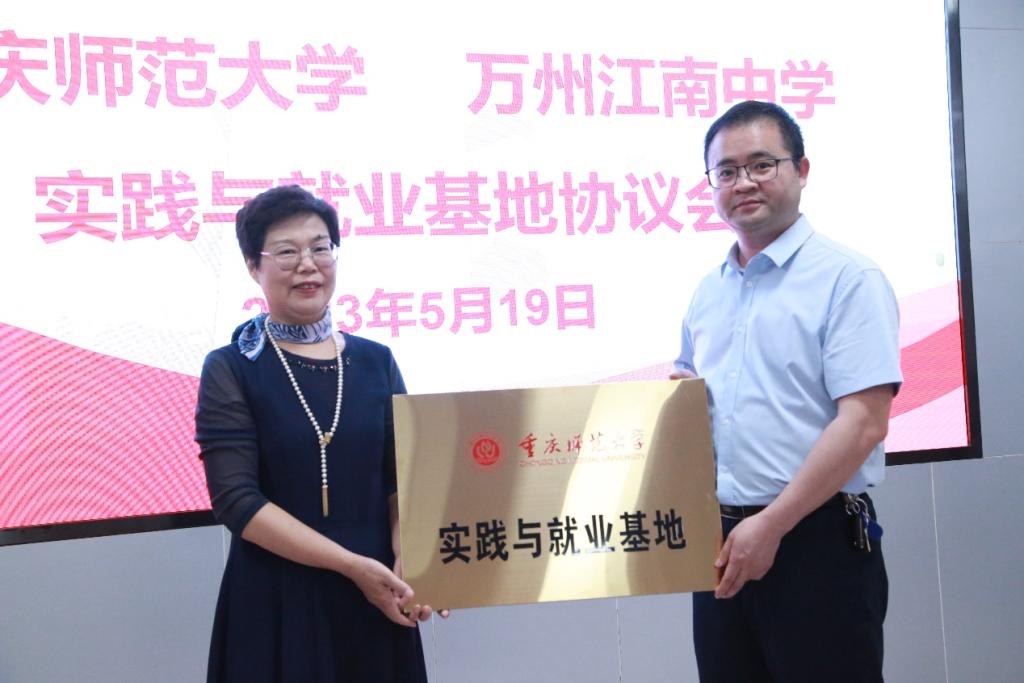 最后,朱桂琴院长与向林校长签订协议并授牌。此次签约授牌仪式,将进一步深化我院应用心理学专业与江南中学的实习合作,为未来双方在人才培养、资源共享、学术交流、科研创新等领域深度合作奠定了坚实的基础。