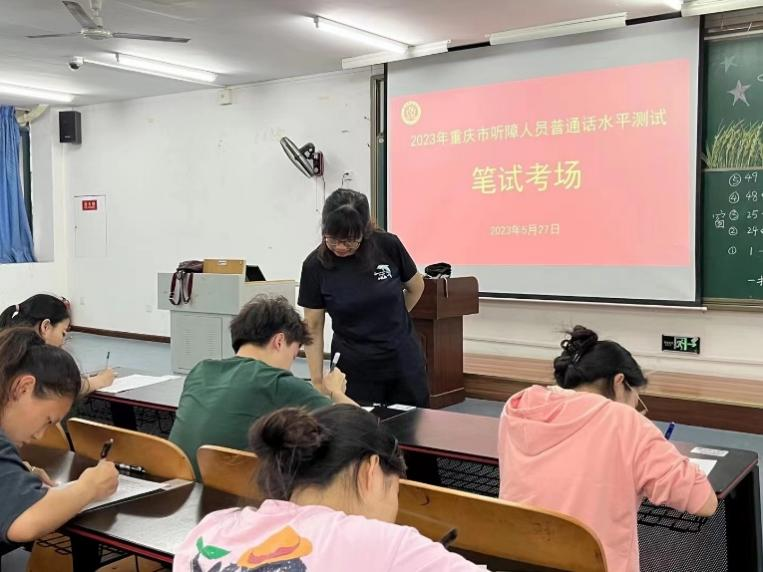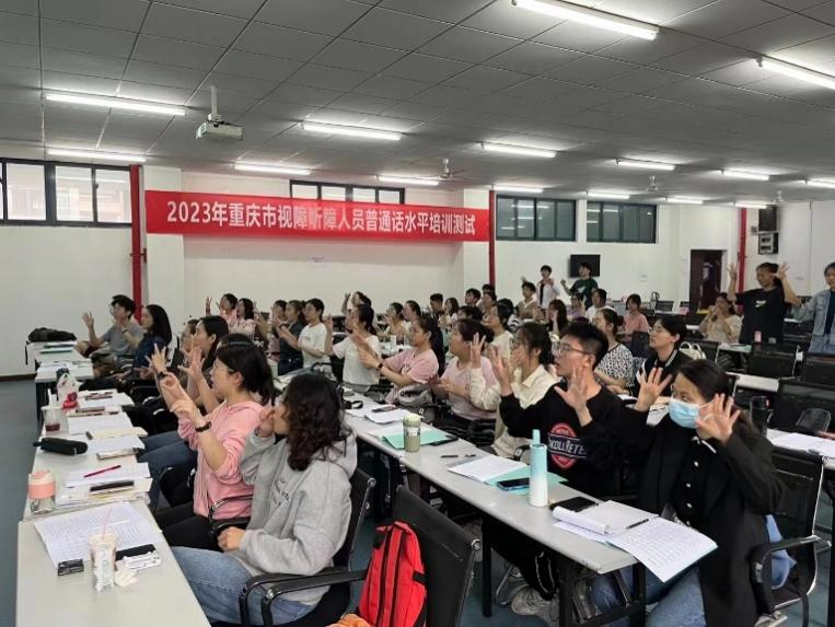 5月25日至29日,由重庆市教委、重庆市残联主办,PA视讯承办的“2023年重庆市视障听障人员普通话水平培训测试”在PA视讯PA视讯成功举办。中国盲文手语推广服务中心测试考点负责人吴月芹副教授、培训专家史玉凤教授、韩梅副教授,为来自全市的55名听障考生,6名视障考生进行了培训和测试。