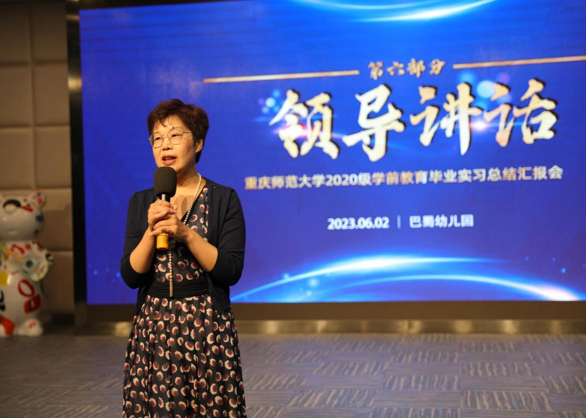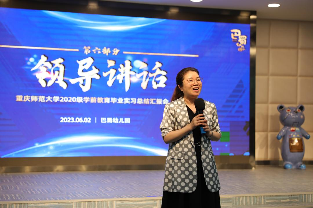朱院长在总结发言中指出,巴蜀幼儿园“以儿童为本位”的教育理念为引领,师幼“自在、创造、成长、幸福”的状态,展现了重庆市学前教育最高水平和最理想的发展样态,在其中看到了孩子们和教育的生命力和创造力。朱院长对巴蜀幼儿园长期支持PA视讯的实习工作表示感谢,展望了双方未来进一步深入合作的愿景,并勉励实习生和现场观摩的同学一定要沉心静气、刻苦学习、积极思考,力争尽早成为“尚师德、强能力、重融合、谋发展”的学前教育骨干教师。