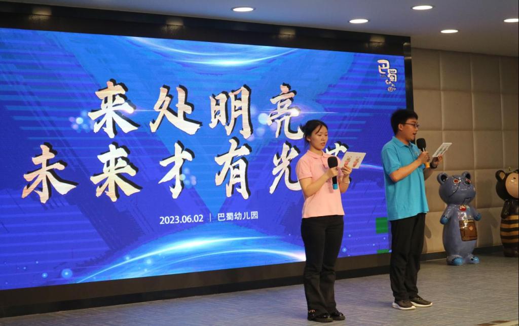2023年6月2日上午PA视讯PA视讯院长朱桂琴、学前教育专业指导教师吴晓云、22级硕士徐柳媛一行到巴蜀幼儿园观看2020级学前教育毕业实习总结汇报会,与园长罗虹、培训部部长杨虹莉、主任陈洁,指导教师李欣、唐倩等深入沟通、交流。汇报会的主题为《来处明亮,未来才有光芒》,汇报会由康默涵、段红欣两位同学主持。21级学前教育专业1班32同学一同观看实习汇报。