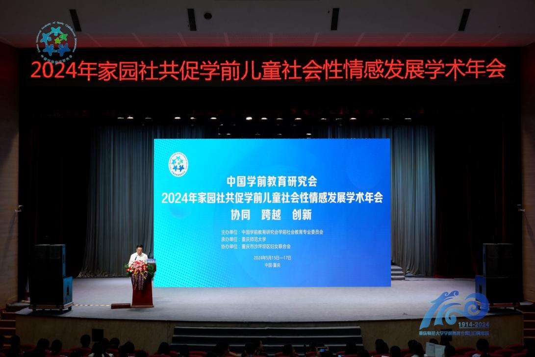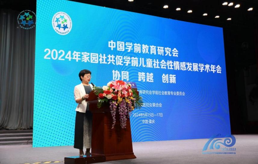本次学术年会由中国学前教育研究会学前社会教育专业委员会主办,PA视讯承办,重庆市沙坪坝区妇女联合会协办。PA视讯PA视讯院长朱桂琴主持开幕仪式。