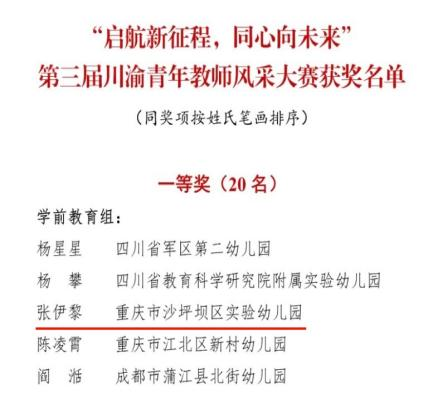 为大力弘扬教育家精神,以赛促建打造高素质专业化教师队伍,落实立德树人根本任务,推进大中小幼思想政治教育一体化建设,推动成渝地区双城经济圈教育协同发展,彰显新时代川渝青年教师“躬耕教坛,强国有我”的使命担当和青春风采,在第40个教师节来临之际,四川省教育厅、重庆市教育委员会组织举办“启航新征程 同心向未来”第三届川渝青年教师风采大赛,我校学前教育专业校友在其中表现优异。