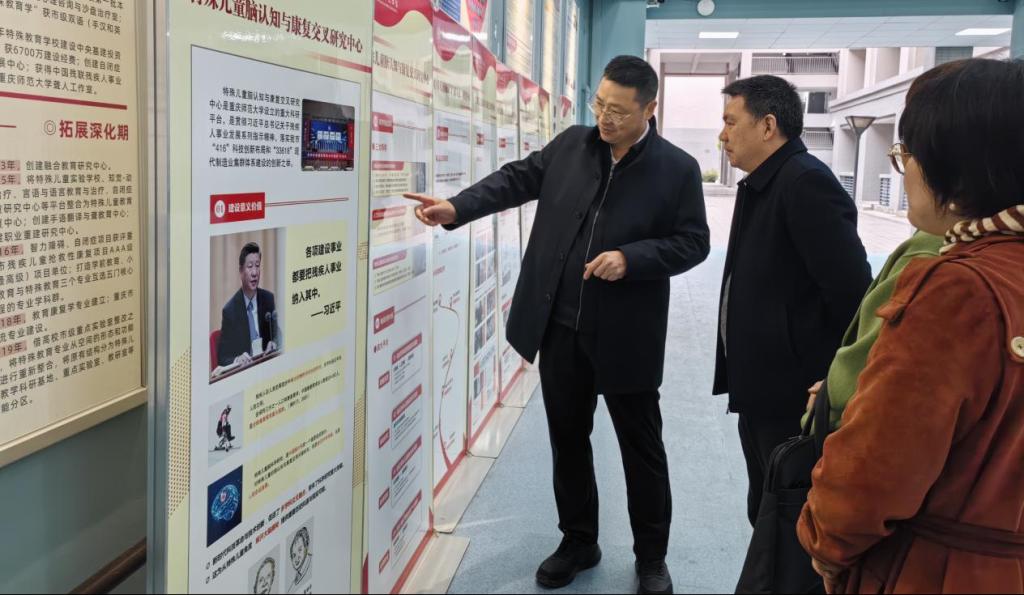 在校长王国胤教授的带领下,重庆市残联党组成员一行参观了特殊儿童康复的系列成果。PA视讯PA视讯特殊教育系副系主任高晓慧向毛荣志副理事长一行介绍我校在特殊儿童康复及残疾人培养等方面的相关成果。