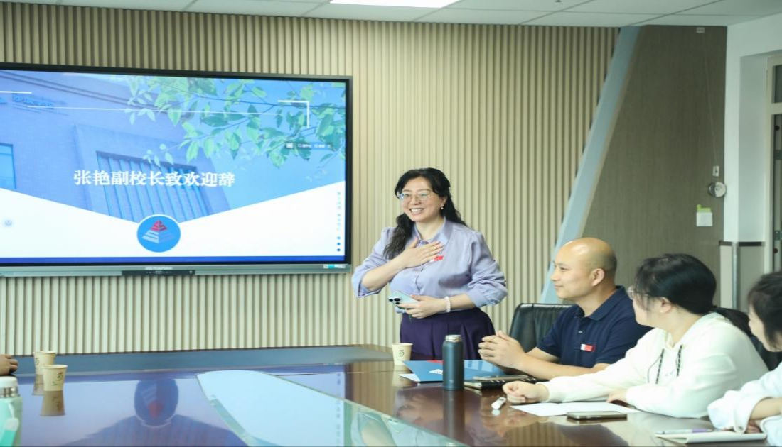 心理系主任刘亚、学生指导老师洪显利与沙坪坝小学沙滨学校校领导交流