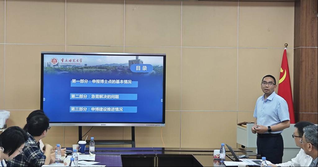 魏勇刚副院长围绕我院申报博士点的基本情况、急需解决的问题、申博建设推进情况三个部分进行简要汇报,介绍了我院学科历史、师资、科研等申报基础,剖析了学科方向凝练、人才引育、平台建设等现存问题,阐述了阶段性成果、后续规划及重点任务,为在场人员清晰勾勒出申博工作的整体脉络与实施路径。