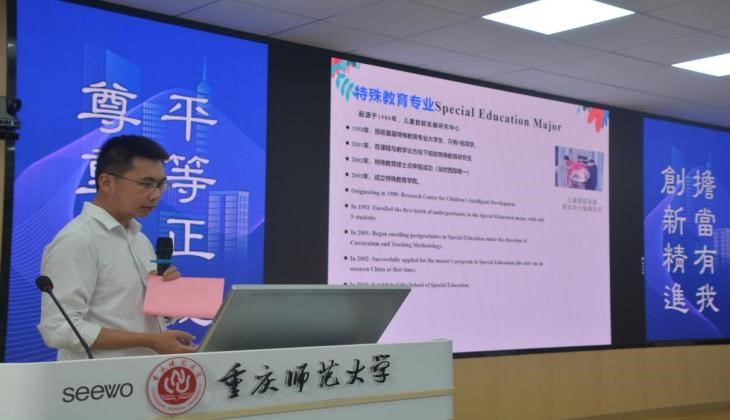 特殊教育系系主任魏寿洪教授系统介绍了特殊教育系从1988年创建的校级科研平台三十多年来,一系(特教系,含特殊教育与教育康复专业大学生、研究生、聋人大学生教育)、一室(市级重点实验室)、一中心(儿童智能发展研究中心)及取得的各项发展成就。。