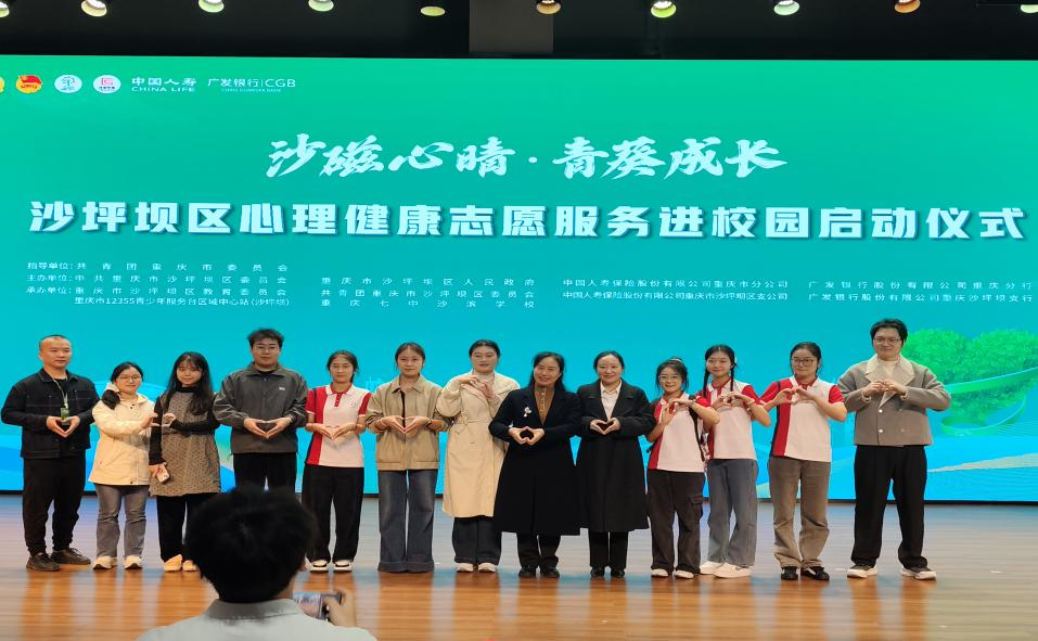 “沙磁心晴·青葵成长”沙坪坝区心理健康志愿服务进校园活动旨在深入贯彻落实重庆市健全青少年心理疏导机制改革要求,切实提升沙坪坝区青少年心理健康水平,通过整合“家校社医”多方资源,搭建专业化心理服务平台,聚焦青少年常见心理困扰和成长发展核心问题,依托心理剧展演、心理辅导讲座、主题体验活动等,增强青少年心理调适能力,引导广大青少年以积极心态迎接成长挑战,筑牢校园心理健康“防护网”。