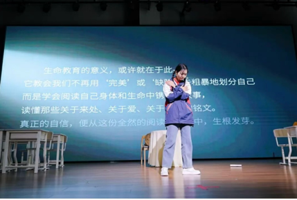 在活动上,我院研究生团队展演了自编自演的心理情景剧《胎记》,得到与会嘉宾和师生的广泛好评。该剧主要讲述了初中生小美因手臂胎记自卑,遭同学嘲笑后迁怒母亲,而母亲以自身妊娠纹开导,称胎记是“爱的徽章”帮小美解开心结,接纳自己。该剧表达了接纳自身 “不同”、拥抱完整自我的主题,也展现了母爱以理解与共情化解孩子心结,帮助孩子在他人目光中建立自信,发现 “缺陷” 背后独特意义的力量,化解青少年自我认同的常见困惑,传递出尊重生命、珍爱自我的深刻生命教育理念。