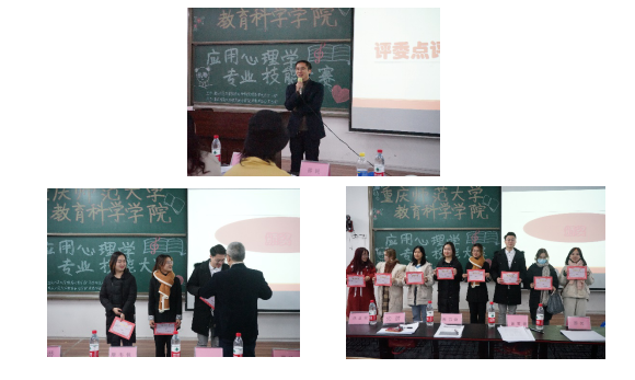 大赛持续了近两个小时,在这段时间里,评委老师们看到了参赛选手立于讲台答辩时的沉着,对同学们的表现寄予充分肯定。此次竞赛展示了应用心理学学子的实力,展示了我们当代大学生满怀的激情,丰富了我们的课余文化生活,创造了展现自我的机会,增强了学院的声望和影响力。同时,选手们也进一步领会了“社会”这个平台的真正含义,只有掌握了过硬的本领,才能在激烈的竞争中立于不败之地。