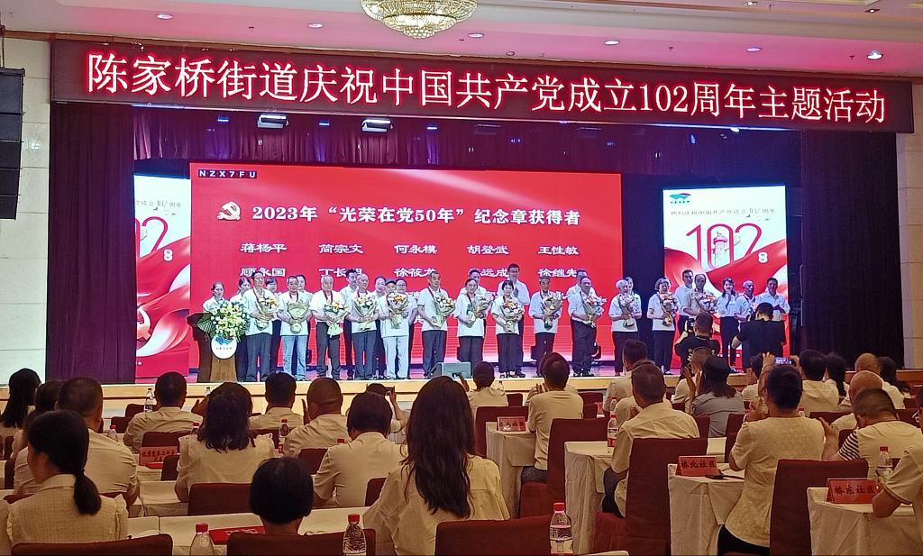参加陈家桥街道本次大会的有:街道党政领导、街道机关全体党员、退休党员、各基层党组织书记、副书记以及“光荣在党50年”纪念章获得者代表等等。代表们感到十分荣幸,能和这些优秀的老党员们一同重温入党誓词,听退休党员讲述那段不平凡的岁月,听年轻党员们讲述新的期待和规划。这是一种神奇而伟大的力量,这种力量叫做赓续红色血脉。