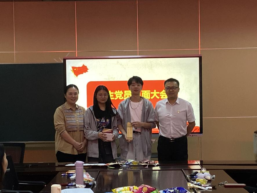 罗庆书记对研究生三支部的工作进行了肯定,期望本支部作为学院样板支部能进一步起到全方面表率作用,希望党员同志们结合专业特色加强思想学习,戒骄戒躁,继续发扬党员先锋模范作用。活动最后,罗书记为研究生三支部的新生党员代表们赠送书籍,要求新生党员提高党性觉悟、增强党性修养,当前需要重点学习好党史等,深入领会党的路线方针政策。
