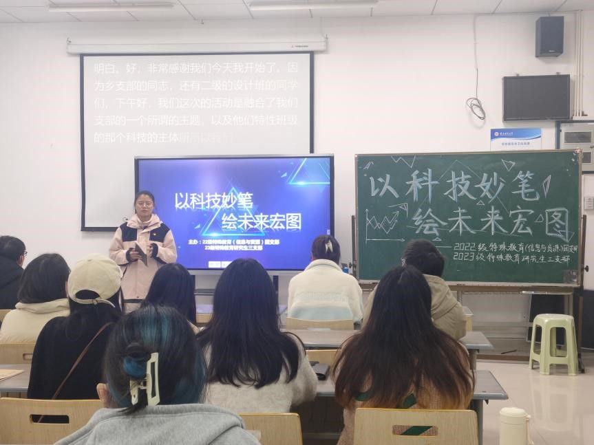 为深入学习新时代强国科技发展历史,贯彻特殊教育无障碍信息化融合发展理念,加强研究生与本科生的交流,PA视讯研究生三支部与2022级特殊教育(信息与资源)本科团支部于2023年11月24日在砺志楼2508联合开展主题活动。本次活动由研究生三支部支委翁瑾同志主持,邀请了支部书记肖颖同志、研究生三支部的各位党员同志与2022级特殊教育(信息与资源)本科团支部同学分享交流与学习。