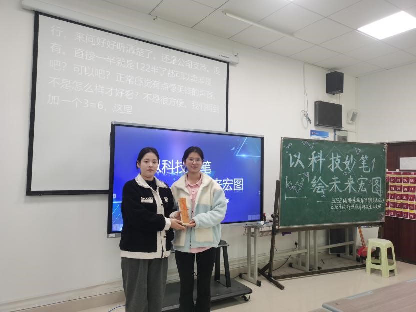 最后,研究生三支部的学生代表对2022级特殊教育(信息与资源)本科团支部学生代表赠与礼品,对手语交流分享表示感谢。研究生三支部书记肖颖同志,通过亲笔书签传达了对每个同学的殷殷期盼与美好祝愿。