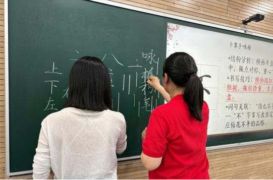 肖颖同志与支部党员同志们书写毛泽东诗词《卜算子・咏梅》,在书写中学习汉字的基本笔画,借咏梅抒怀,以梅花象征中国共产党人在逆境中的坚韧品格,进一步坚定了对中华优秀传统文化的认同感与自豪感。同时,抗战精神与《卜算子・咏梅》所表达的精神一脉相承,激励着一代又一代中国人在实现中华民族伟大复兴的征程中不畏艰难,奋勇前行。